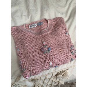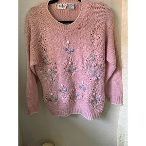 5/$20 💥 Vintage pink Sweater floral small medium By Design 80s 70s