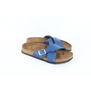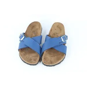 Vintage Birkis Birkenstock Womens 6 Distressed Leather Cross Strap Sandals Blue