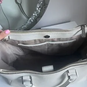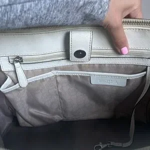 Michael Kors purse, silver tone MK drop logo