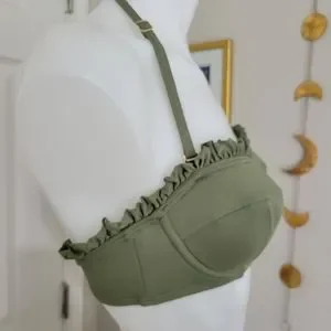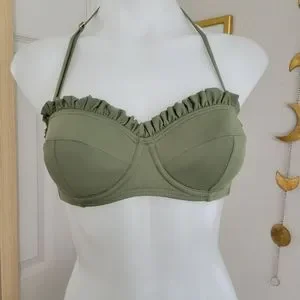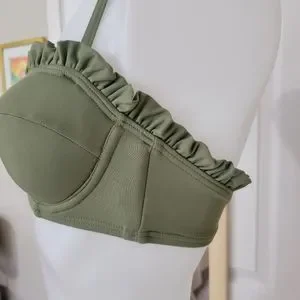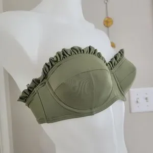 MICHAEL Michael Kors Bikini Top Olive Green Ruffle Small NWOT
