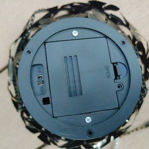 Install three AA batteries (not included) and set the on/off switch to on. The bulb lights and stays lit for another 6 hours before automatically switching off for 18 hours. Hanging chain included.