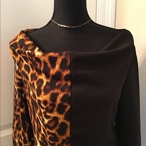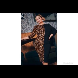 Half black half animal print dress. Body con. 3/4 sleeves. Boat neck. Midi length. Never worn. Please ask questions prior to purchase to ensure satisfaction. I ship same day or next day. Once shipped, shipping time is out of my control and contingent upon carrier delays.
