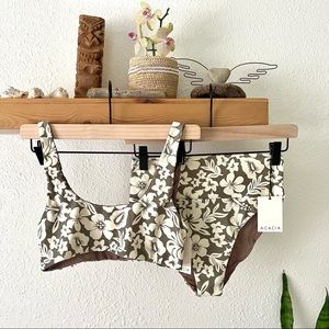 photos of actual print show bottoms. Modeled photos of solid green top show style of top.