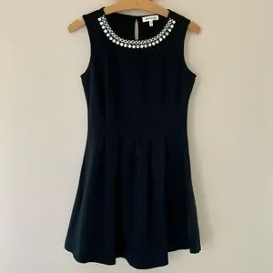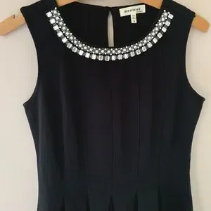 Monteau Jewel (clear crystals and pearls) Neck Fit and Flare Little Black Dress. Fabric is a thicker ponte knit material and is very flattering. Gently worn. Women’s size Small