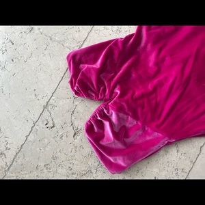 Bright pink strapless velvet bodycon dress. Has a hefty amount of stretch and wire in the sweetheart top to keep you held up. Very comfortable! Worn twice - very sexy for a date or event.