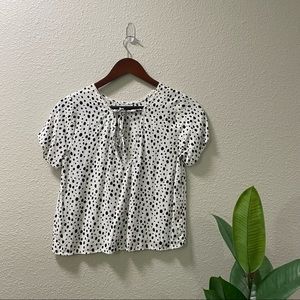Only worn once. In perfect condition! Abercrombie & Fitch white and black polka top with tie back detail. Fits slightly cropped. 100% viscose.