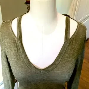 Army Green.. Very cute, Soft, light weight, comfortable, somewhat form fitting Long Sleeve tee. Was Barely used, in great condition.