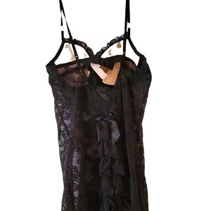 Victoria's Secret lingerie, Lacey, Black with pink built in bra,Women's size 36C