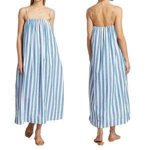 Ganni Striped Organic Cotton Spaghetti Strap Maxi Dress Blue White Size: 2 NWOT