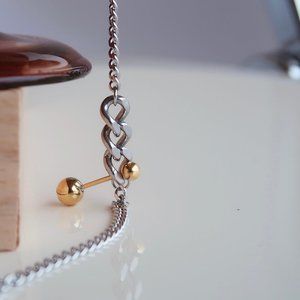 NEW Two Tone 18K Gold Plated Link Chain Gold Ball Bar Necklace