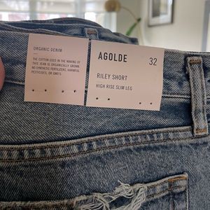 New with tags! AGOLDE high waisted Riley short size 32 in snapshot. Sold at Aritzia and Revolve.