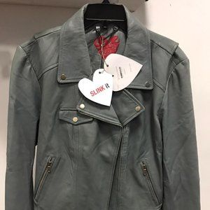 NWT LAMB LEATHER SLINK Crop Jacket Size 2 AUTHENTIC GENUINE MOTORCYCLE MOTO zip