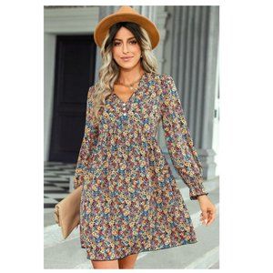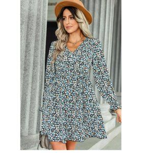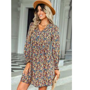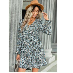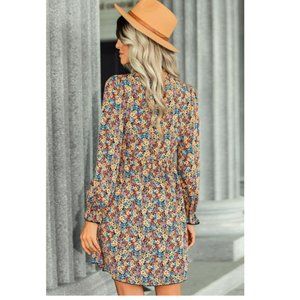 Floral Decorative Button Mini Dress
