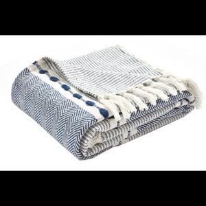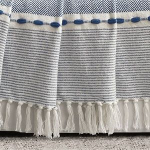 50” x 60” Herringbone Striped yarn Dyed COTTON WOVEN THROW BlANKET whit tassels navy - Lush decor.
