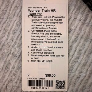 🪷LULULEMON🪷Wunder Train High-Rise Tight 25” Leggings 🪷Size: 2