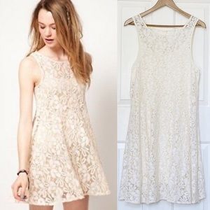 Free People Miles of Lace Ivory Tank Swing Dress L