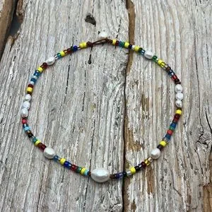 Seaside Pearls Roxanne Multicolored Bead Freshwater Pearl & Leather Choker Necklace