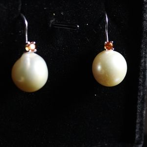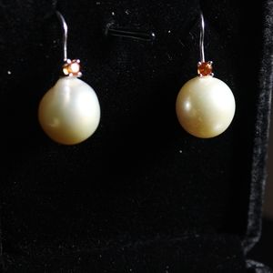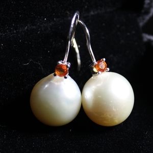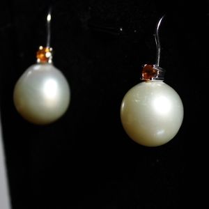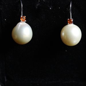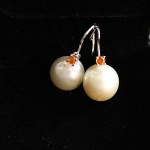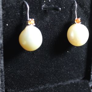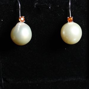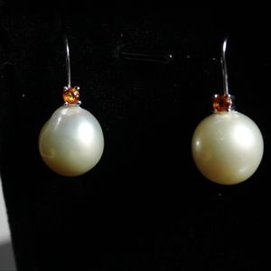These earrings give me total Fall/Halloween vibes. The orange sapphire with the cream Pearls make a unique match.