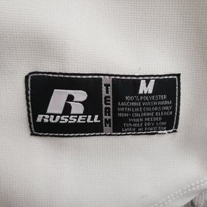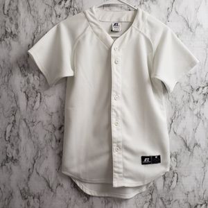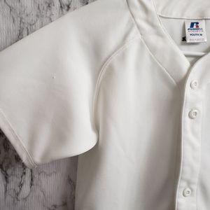 Russell Athletic White Jersey Youth Size Medium. Button down Jersey. White and black. It has stains as shown in pictures.