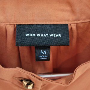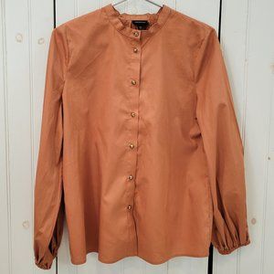 Who What Wear button down blouse with puffy sleeves and mandarin collar. Elastic at wrist.