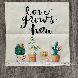 “Love Grows Here” Cactus Pillowcase w/ Cactus Decor