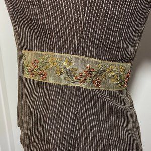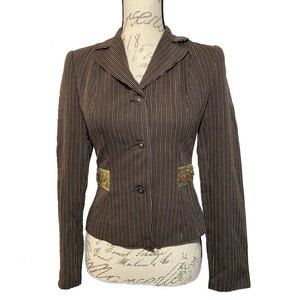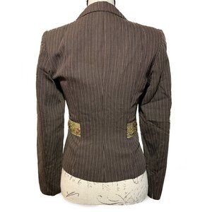 NWT Tempo Paris Blazer Brown Pinstripe with beautiful Floral Accent Size 2