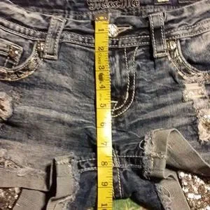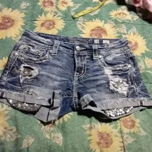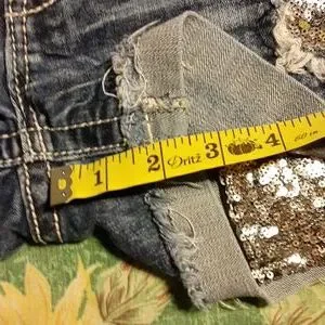 These are in like new condition, hardly worn. They have silver sequins on the front pockets and back pockets. alot of sparkle