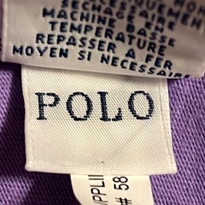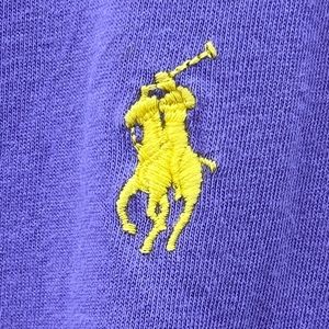 This amethyst purple top is made out of 100% cotton. The logo on the front left side has the RL in a golden yellow. It is in great used condition. Comes from a smoke and pet free home. Measurements are approximate and were taken while laying flat: