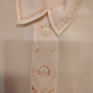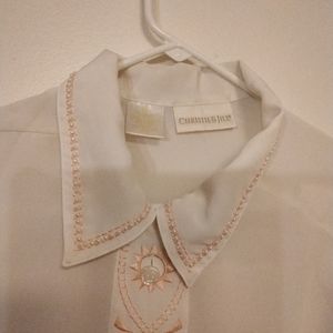 CHRISTIE & JILL FLORAL pink EMBROIDERED IVORY patted shoulder BLOUSE SIZE 16 POLYESTER