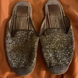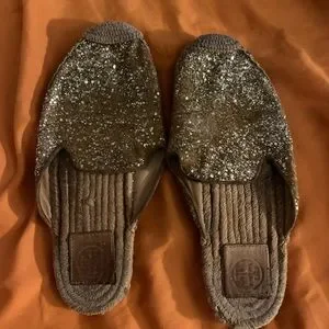 espadrille slip on flats with gold sequin detail on top from tory burch. pls read full description of condition