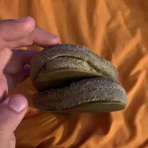 posting because i figured someone may be hunting for these and want to clean them up. these shoes have a lot of wear as shown, price reflects. the front of one has pulled apart a bit as well as a bit of the sides but could be easily fixed if glued. also has some pulling flaws on sides and back. sequins are a bit worn from some walking but still very cute shoes. there is also some dark spots from walking as well on the bottom sides
