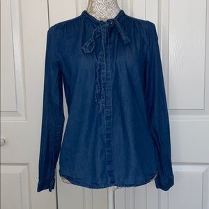The Limited Blue Denim Button Up Shirt with neck tie. Great quality shirt perfect for multiple occasions. Let me know if you have any questions love ❤️