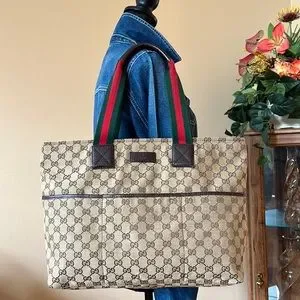 Exterior has no rips or tears or stains. Interior has signs of used of pre-used. Red and green handles still looks beautiful. Brown leather handles including trim has some signs of used as pre-used. Corners are in excellent condition no scuffs. Please zoom in all pictures for details.