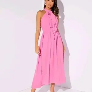 ๐NWT Hot Pink Chiffon Halter Midi Classic ๐