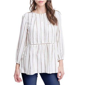 3/4 Sleeve Blouse Peasant Shirt with Crocheted Accents