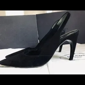 Prada pointy toe black suede slingback pump 4 inch heel size 8 1/2