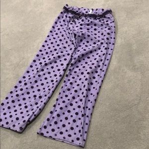 Purple PJ pants Colorado clothing size large purple polkadots on the lighter purple background history has come out of one of the holes but is in the other one if you want to fish it out I’m selling this pretty cheap