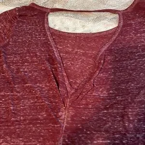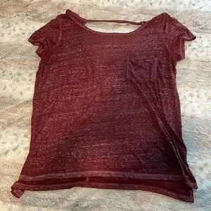 Maroon, sheer t-shirt with back cutout