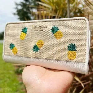 Kate Spade Darcy Pineapple Embroidered Large Slim Bifold Wallet