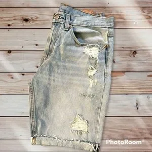 Retro style boyfriend jean shorts. No stretch at all. Excellent used condition. No flaws.
