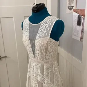 BCBG MAXAZIRA DRESS. Boho, cream and white with tulle and lace. Size 2