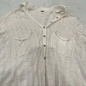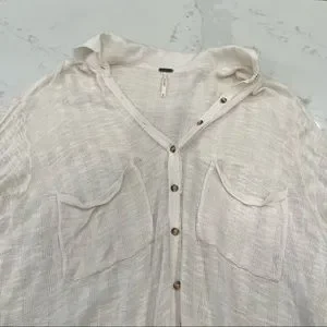 Free People cream long sleeve button down top