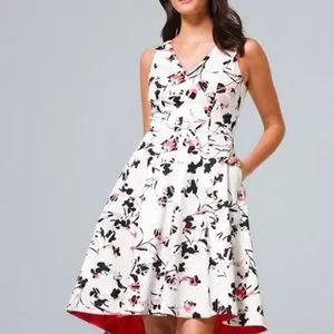 Release your inner free spirit in this flouncy fit-and-flare dress, featuring a thigh-skimming hemline and floral-bedecked design. A collarbone-baring neckline brings show-stealing drama, while handy pockets provide a place store small extras.