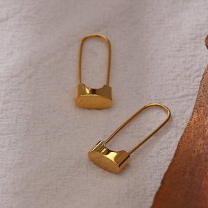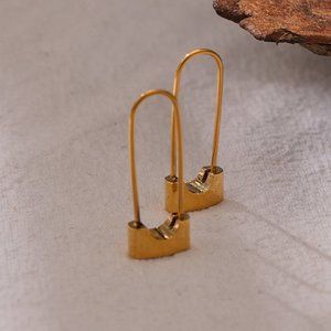 ^NEW 18K Gold Plated Lock Pin Hoop Earrings