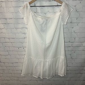 Tags: Revolve, Nordstrom, Anthropologie, day, casual, off shoulder, white, flounce, cottagecore, engagement, bachelorette, pretty, feminine, brunch, lace, bridal shower, party, night out, contemporary, neutral, eyelet