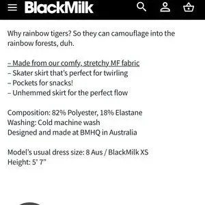 Blackmilk “Rainbow Tiger Scoop Skater Dress” Size Medium M NWT