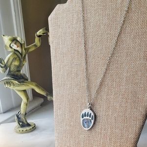 Cute Bear Claw pendant, on a silver tone chain.