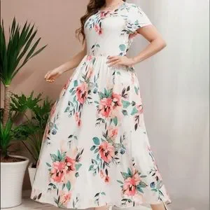 Boho Gypsy Plus Size Floral Print Maxi Dress NO BELT