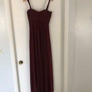 Birdy Grey Bridesmaid Dress in Cabernet. This is flowy and super flattering! I wore it post partum for my sister’s wedding and felt great in it! It is also baby-bump friendly and would be perfect for maternity photos. EUC—worn once! The color is so amazing!
