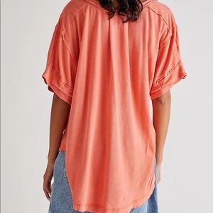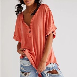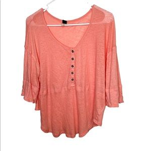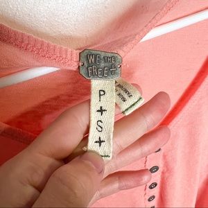 Free People Care FP Heritage Henley Rose Coral Boho Flowy Shirt Size Small